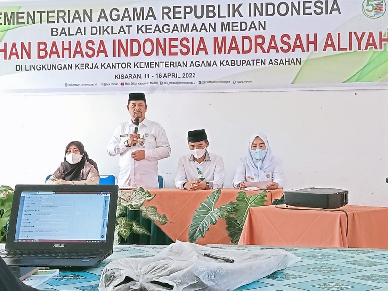 Alwashliyah49paslem.sch.id. Tim WEB – MAS Al-Washliyah 49 Pasar Lembu mengutus Guru Bahasa Indonesia, Ibu Ana Safitri Lubis, M.Pd dalam pelatihan Bahasa Indonesia Madrasah Aliyah yang diselenggarakan oleh Balai Diklat Keagamaan Medan yang telah berkordinasi dengan Kementrerian Agama Kabupaten Asahan yang terselenggara mulai tanggal 11-16 April 2022 berlokasi di MAN Asahan.
