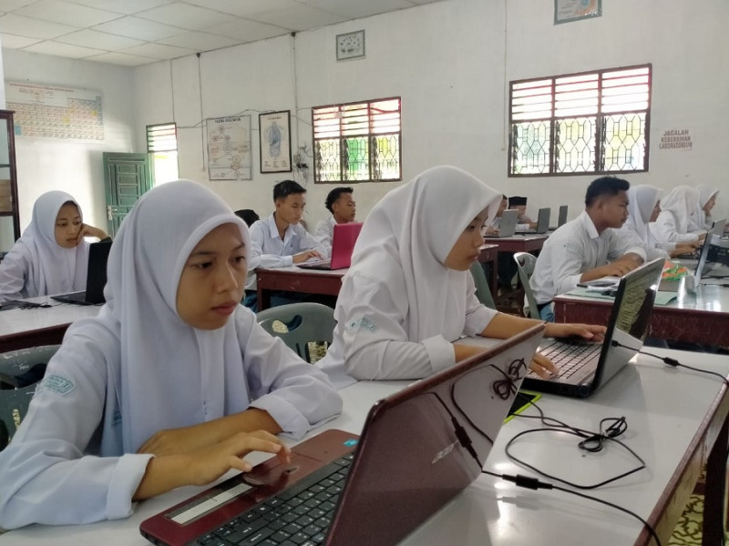 alwashliyah49paslem.sch.id - Tim WEB Peserta Didik MAS Al-Washliyah 49 Pasar Lembu mengikuti pelaksanaan ujian Asesmen Nasional Berbasis Komputer (ANBK) secara Online bertahap mulai pelaksanaan simulasi ANBK, pelaksanaan gladi bersih ANBK dan pelaksanaan ANBK Utama dengan peserta sampling yang terpilih dari Pusat untuk mewakili Madrasah dengan jadwal pelaksanaan dibagi menjadi 3 Sesi.