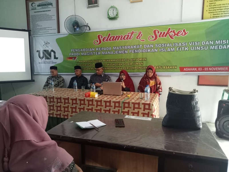 Pengabdian Masyarakat tersebut dihadiri oleh  tim Dosen UIN SU beserta beberapa Mahasiswa Magister (S2). Kegiatan Pengabdian Masyarakat tersebut dirangkai dengan kegiatan diskusi bersama Tenaga Pendidik dan Kependidikan yang bertema “Kita Wujudkan Madrasah Mandiri Berprestasi MAS Al-Washliyah 49 Pasar Lembu”.