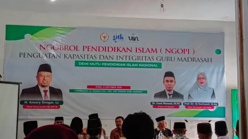 Alwashliyah49paslem.sch.id-Tim WEB – MAS Al-Washliyah 49 Pasar Lembu mengikuti kegiatan ngobrol bareng (NGOPI) yang di hadiri oleh perwakilan guru guru dari Madrasah lain yang ada di Kecamatan Air Joman dan Silau Laut yang dilaksanakan pada hari Rabu ,8 Oktober 2025.Adapun kegiatannya diskusi hangat mengenai penyetaraan hak dan kewajiban antara pegawai pemerintah dengan perjanjian kerja (PPPK) guru madrasah dan guru di sekolah negeri menjadi topik utama dalam acara “Ngobrol Pendidikan Islam ” bersama Wakil Ketua Komisi VIII DPR RI Bapak H. Ansory Siregar ,Lc,dan juga Direktur GTK Madrasah Bapak Dr. Faesal Musaad ,M.Pd.