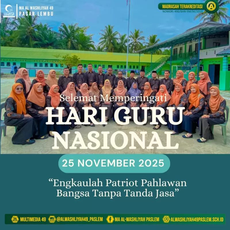 Alwashliyah49paslem.sch.id-Tim WEB – Dalam memperingati Hari Guru Nasional ke-80 MAS Al-Washliyah 49 Pasar Lembu melaksanakan upacara bendera di halaman madrasah, Selasa (25/11/25). Perayaan Hari Guru Nasional tahun ini bertema “ Merawat Semesta Dengan Cinta”. Upacara peringatan tersebut dimulai tepat pukul 08.30 WIB.