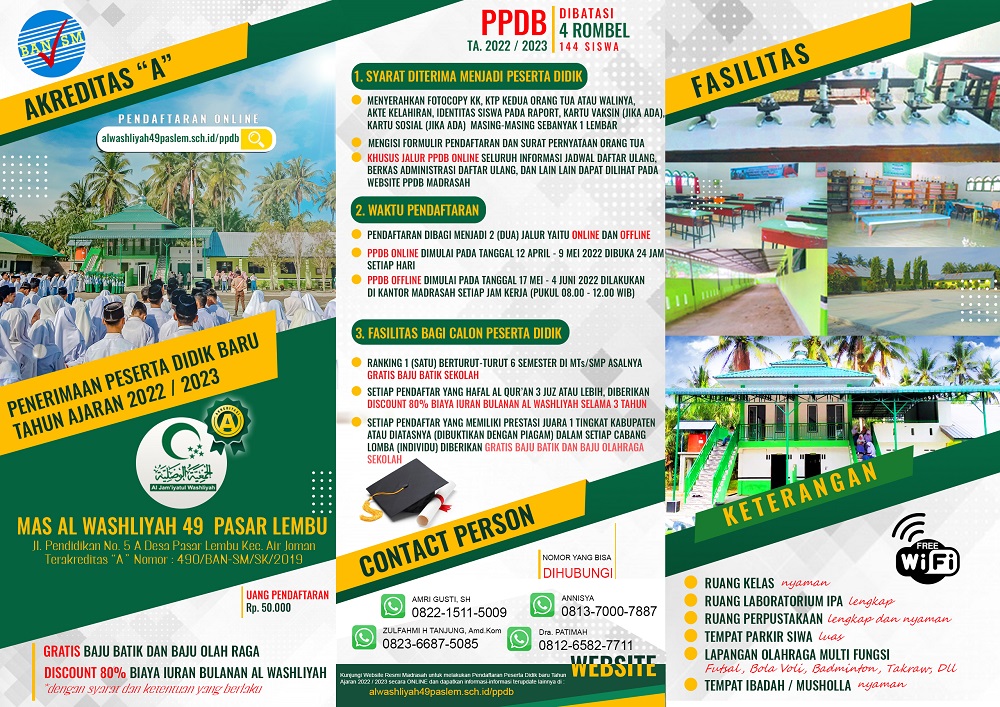 BROSUR PPDB MAS AL WASHLIYAH 49 PASAR LEMBU 2022/2023 (TAMPAK BELAKANG)